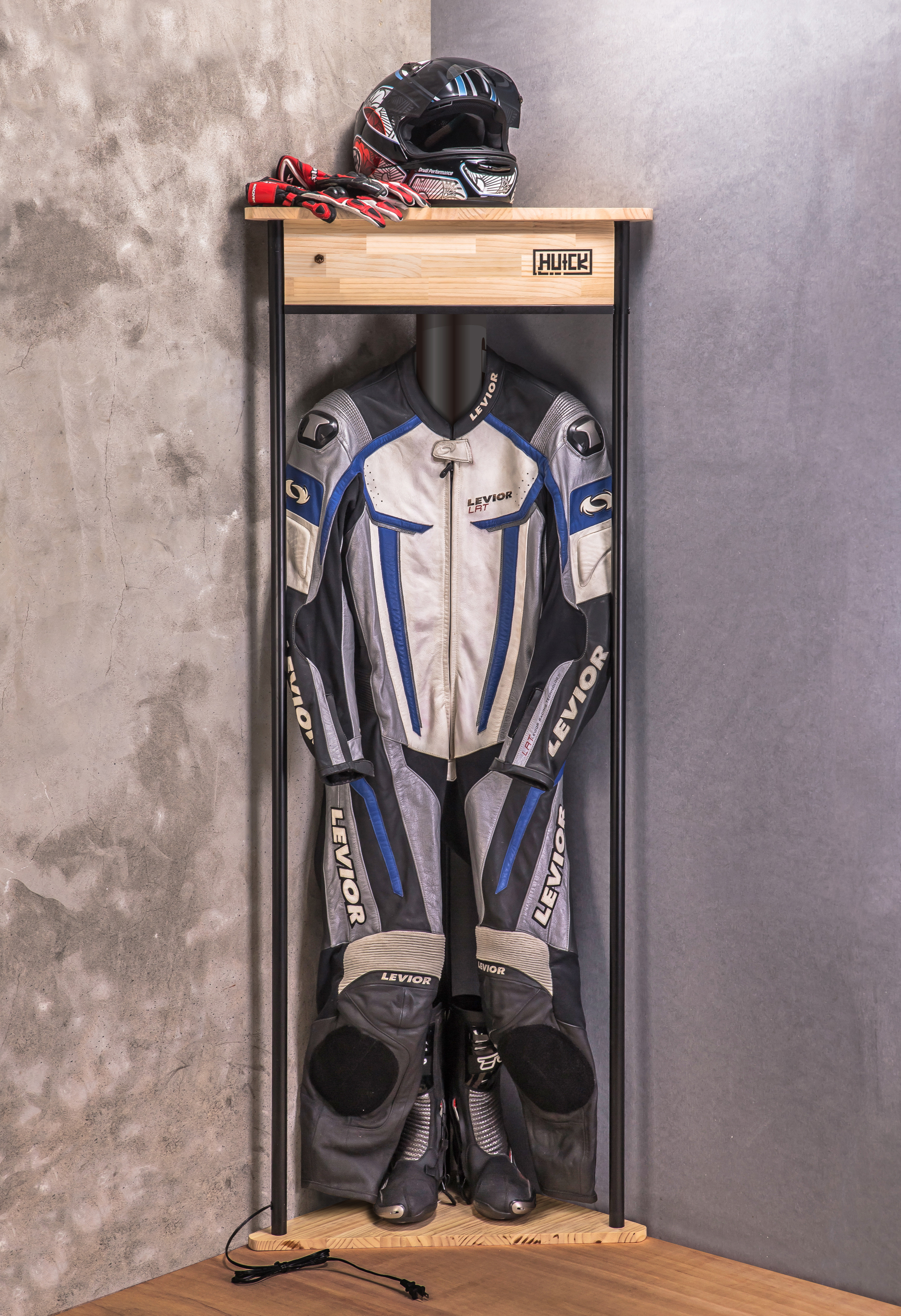 Through our innovative design, the “HUCK RIDING GEAR STAND” has now perfected its functionality by using a drying system that allows airflow to blow through the riding jacket while hanging.